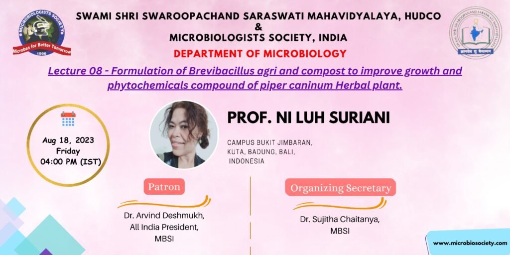 Lecture 8 – Formulation of Brevibacillus agri and compost to improve growth and phytochemicals compound of piper caninum Herbal plant.