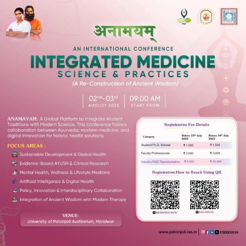 Anamayan Patanjali Integrated Medicine Science & Practices Date: August 02-03, 2025 Sponsored by: University of Patanjali Auditorium Information Brochure