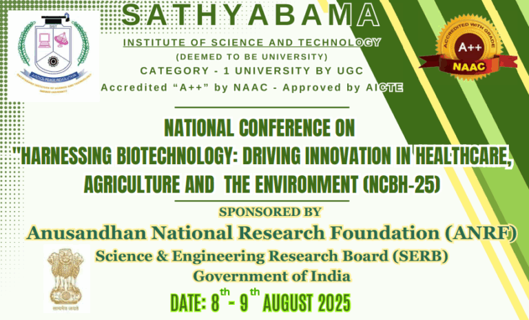 National Conference on “Harnessing Biotechnology: Driving Innovation in Healthcare Agriculture and the Environment (NCBH-25)” Date: August 08-09, 2025 Sponsored by: Anusandhan National Research foundation Information Brochure